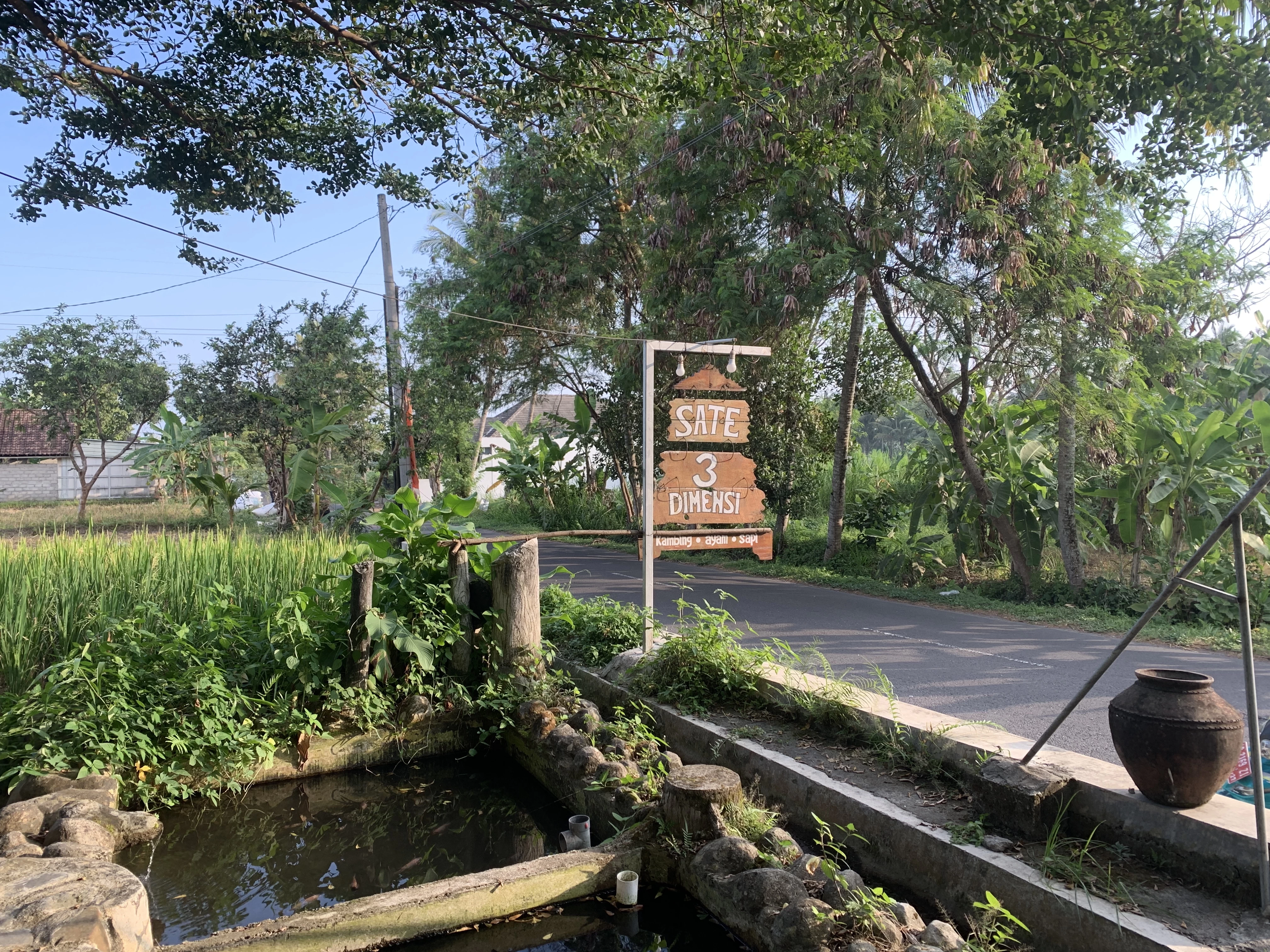 Menikmati hidangan lezat di Sate 3 Dimensi semakin sempurna dengan suasana warung yang dikelilingi oleh hamparan sawah yang hijau. Pemandangan alam yang asri ini memberikan suasana yang tenang dan nyaman, membuat pengalaman makan Anda semakin menyenangkan. Anda bisa menikmati setiap suapan sambil memandangi pemandangan sawah yang luas, memberikan kesan tersendiri yang sulit ditemukan di tempat lain.